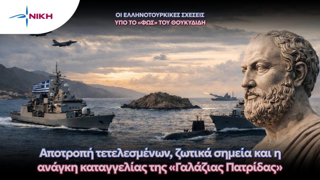 Ο Θουκυδίδης μας υπενθυμίζει ότι η ειρήνη δεν διατηρείται με ευχές, αλλά με ισορροπία ισχύος και καθαρά όρια. Η ΝΙΚΗ υποστηρίζει μια Ελλάδα που δεν φοβάται τη διεθνή νομιμότητα ούτε τον διάλογο όταν αυτός διεξάγεται επί ίσοις όροις, απορρίπτει όμως κάθε διαδικασία που μετατρέπει την απειλή σε κανονικότητα και την ασάφεια σε πολιτική. Και χωρίς την άρση του casus belli, καμία συζήτηση δεν μπορεί να υπηρετήσει ουσιαστικά τα ελληνικά συμφέροντα.