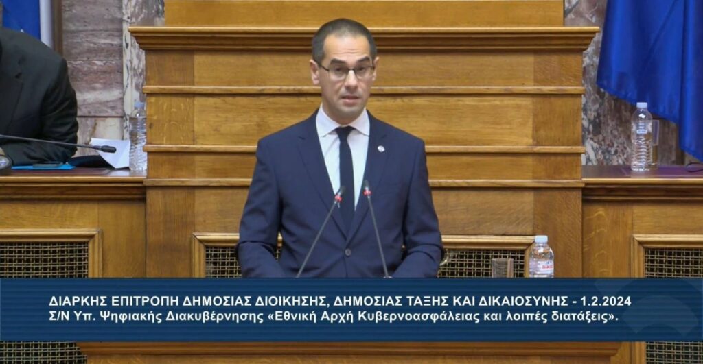 Εισήγηση του Γεώργιου Ρούντα, βουλευτή Λάρισας της ΝΙΚΗΣ, στη Διαρκή Επιτροπή Δημόσιας Διοίκησης, Δημόσιας Τάξης και Δικαιοσύνης για το σχέδιο νόμου του Υπουργείου Ψηφιακής Διακυβέρνησης «Εθνική Αρχή Κυβερνοασφάλειας και λοιπές διατάξεις» (1.2.2024).