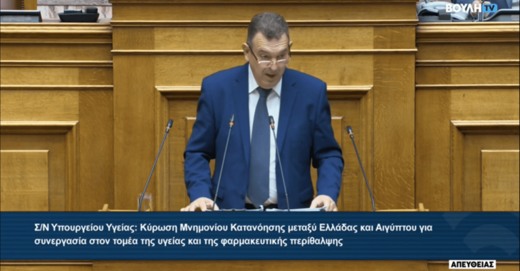 Μόνη συζήτηση και ψήφιση επί της αρχής, των άρθρων και του συνόλου του σχεδίου νόμου του Υπουργείου Υγείας: «Κύρωση του Μνημονίου Κατανόησης μεταξύ του Υπουργείου Υγείας της Ελληνικής Δημοκρατίας και του Υπουργείου Υγείας και Πληθυσμού της Αραβικής Δημοκρατίας της Αιγύπτου για τη συνεργασία στον τομέα της υγείας και της φαρμακευτικής περίθαλψης».