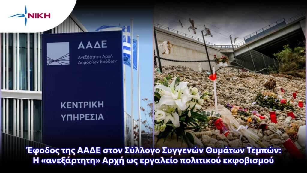 Η έφοδος της ΑΑΔΕ στα γραφεία του Συλλόγου Συγγενών Θυμάτων Τεμπών στη Θεσσαλονίκη αποκαλύπτει το πραγματικό πρόσωπο μιας δήθεν «ανεξάρτητης» Αρχής.