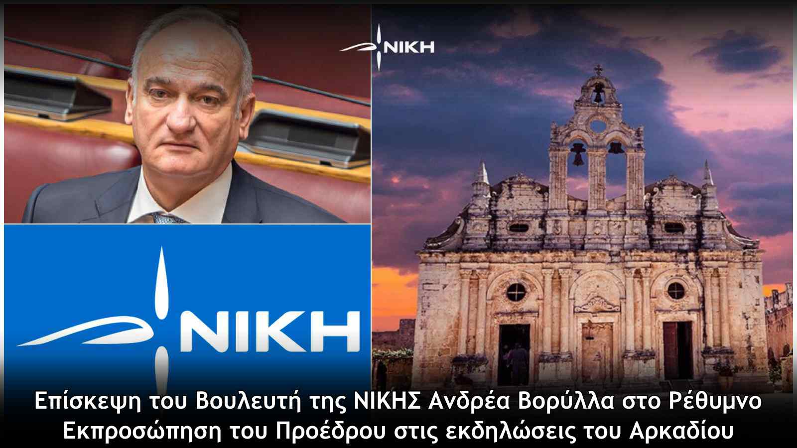 Ο Βουλευτής της ΝΙΚΗΣ, Ανδρέας Βορύλλας, θα μεταβεί στο Ρέθυμνο στις 7 και 8 Νοεμβρίου 2025, εκπροσωπώντας τον Πρόεδρο της ΝΙΚΗΣ, Δημήτρη Νατσιό, στις επίσημες εκδηλώσεις μνήμης και τιμής για την 159η επέτειο της Μάχης και του Ολοκαυτώματος της Ιεράς Μονής Αρκαδίου.