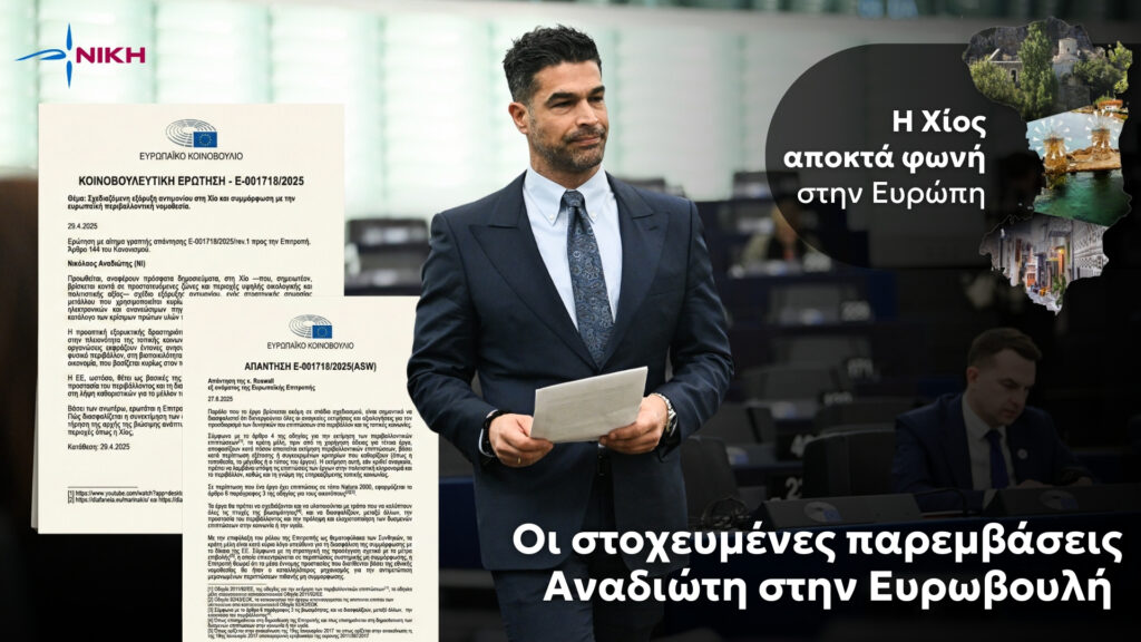 Ωστόσο, για τους κατοίκους της Χίου, η εξόρυξή του αποτελεί ένα σχέδιο που απειλεί το φυσικό περιβάλλον, τη βιοποικιλότητα, τις υδατικές πηγές, καθώς και δύο βασικούς πυλώνες της τοπικής οικονομίας, τον τουρισμό και τη γεωργική παραγωγή. Ο Ευρωβουλευτής της ΝΙΚΗΣ ζήτησε από την Ευρωπαϊκή Επιτροπή να τοποθετηθεί με σαφήνεια: πώς διασφαλίζονται η βιώσιμη ανάπτυξη, η περιβαλλοντική προστασία και, κυρίως, η συμμετοχή της τοπικής κοινωνίας στις αποφάσεις που καθορίζουν το μέλλον της;