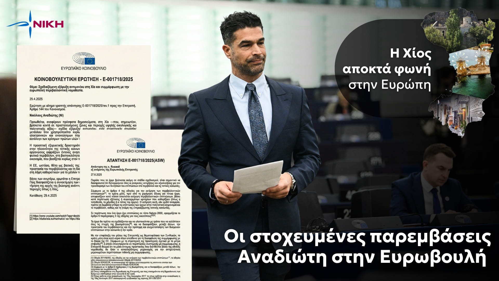 Η Χίος —ένα νησί με τεράστια ιστορική, πολιτιστική και περιβαλλοντική βαρύτητα— έχει ήδη βρεθεί δύο φορές στο επίκεντρο του Ευρωπαϊκού Κοινοβουλίου χάρη στις παρεμβάσεις του. Κανένας άλλος Έλληνας Ευρωβουλευτής δεν έχει δείξει αντίστοιχο ενδιαφέρον, ούτε έχει καταθέσει γραπτές ερωτήσεις για ζητήματα που αγγίζουν τόσο κρίσιμα το μέλλον του νησιού, από τις περιβαλλοντικές απειλές μέχρι την προστασία της ζωής και της φυσικής κληρονομιάς του.
