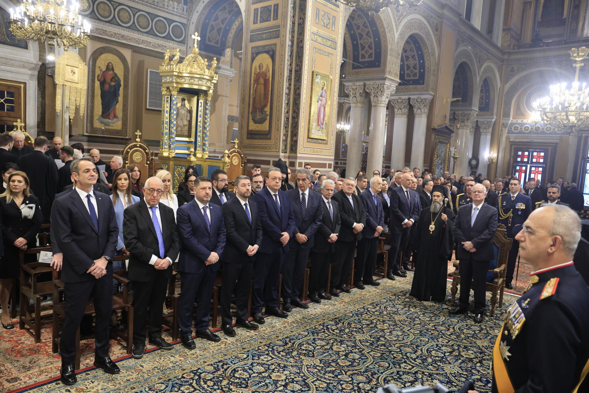 Προηγήθηκε η Πανηγυρική Επίσημη Δοξολογία στον Καθεδρικό Ναό του Ευαγγελισμού της Θεοτόκου Αθηνών, προεξάρχοντος του Αρχιεπισκόπου Αθηνών και πάσης Ελλάδος κ. Ιερωνύμου, παρουσία του Προέδρου της Ελληνικής Δημοκρατίας κ. Κωνσταντίνου Τασούλα, του Πρωθυπουργού κ. Κυριάκου Μητσοτάκη, καθώς και της πολιτικής και στρατιωτικής ηγεσίας της χώρας.