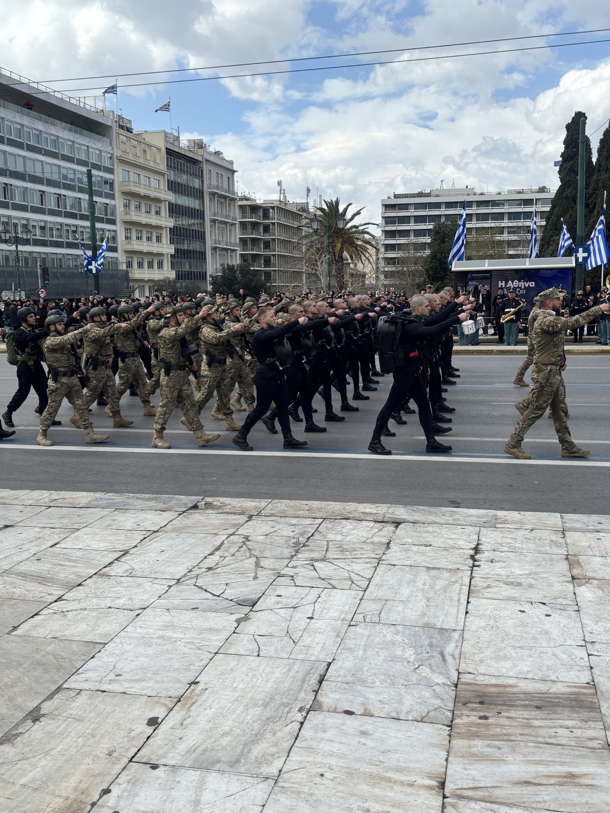 Ακολούθησε η κατάθεση στεφάνου στο Μνημείο του Αγνώστου Στρατιώτη από τον Πρόεδρο της Δημοκρατίας και η στρατιωτική παρέλαση στην πλατεία Συντάγματος, με τη συμμετοχή των τμημάτων των Ενόπλων Δυνάμεων και των Σωμάτων Ασφαλείας, αποδίδοντας τιμή σε όσους αγωνίστηκαν για την ελευθερία της πατρίδας.
