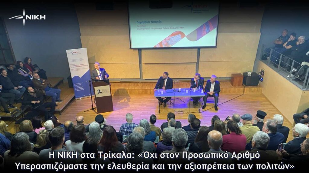 Στην κατάμεστη αίθουσα του Μουσείου Τσιτσάνη στα Τρίκαλα, πραγματοποιήθηκε το απόγευμα της Πέμπτης, με ιδιαίτερη επιτυχία η εκδήλωση της ΝΙΚΗΣ με θέμα τον «Προσωπικό Αριθμό» και τις επιπτώσεις του στα προσωπικά δεδομένα και τις ελευθερίες των πολιτών.