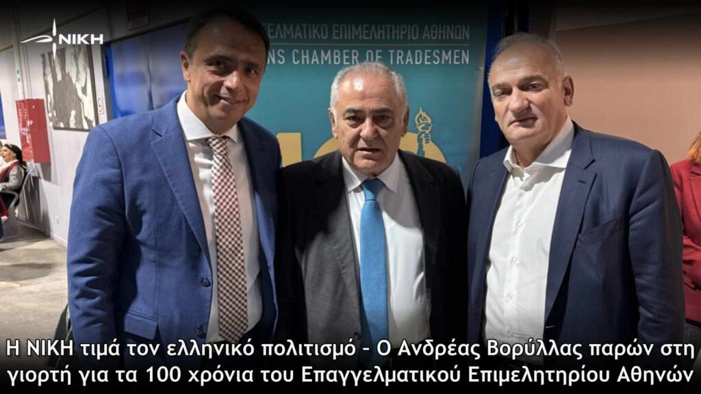 Μια ξεχωριστή βραδιά αφιερωμένη στην ελληνική παράδοση και τον πολιτισμό διοργάνωσε το Επαγγελματικό Επιμελητήριο Αθηνών (ΕΕΑ), με αφορμή τη συμπλήρωση 100 χρόνων από την ίδρυσή του. Την εκδήλωση τίμησε με την παρουσία του ο βουλευτής Β2 Δυτικού Τομέα Αθηνών της ΝΙΚΗΣ, Ανδρέας Βορύλλας, ο οποίος συνομίλησε με τον πρόεδρο του ΕΕΑ κ. Γιάννη Χατζηθεοδοσίου και τον αντιπρόεδρο κ. Νίκο Γρέντζελο, εκφράζοντας τη στήριξη του κόμματος στους ανθρώπους που κρατούν ζωντανή την ελληνική επιχειρηματικότητα.