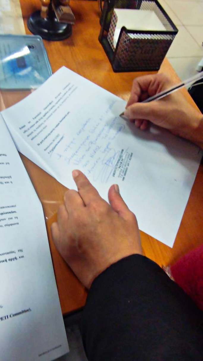 Το έγγραφο κατατέθηκε επίσης στην Εισαγγελία Εφετών και στην Εισαγγελία Πρωτοδικών Θεσσαλονίκης. Η αρμόδια εισαγγελέας ενημερώθηκε άμεσα. Παρ’ όλα αυτά, αρνήθηκε να αναστείλει τη διαδικασία.