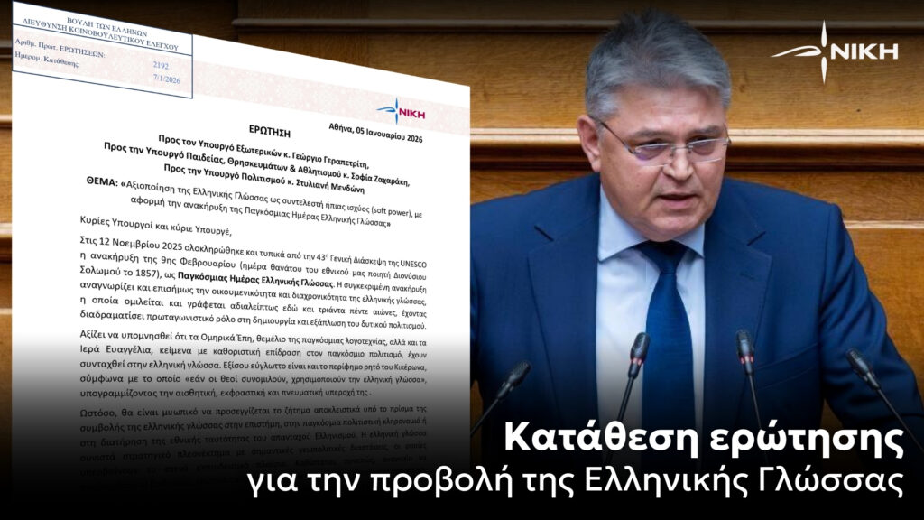 Για το θέμα αυτό ο Πρόεδρος της Νίκης κ. Δημήτρης Νατσιός έθεσε σειρά ερωτήσεων στα Υπουργεία Εξωτερικών, Παιδείας και Πολιτισμού, για να ενημερωθεί για τις πρωτοβουλίες που έχουν αναλάβει.