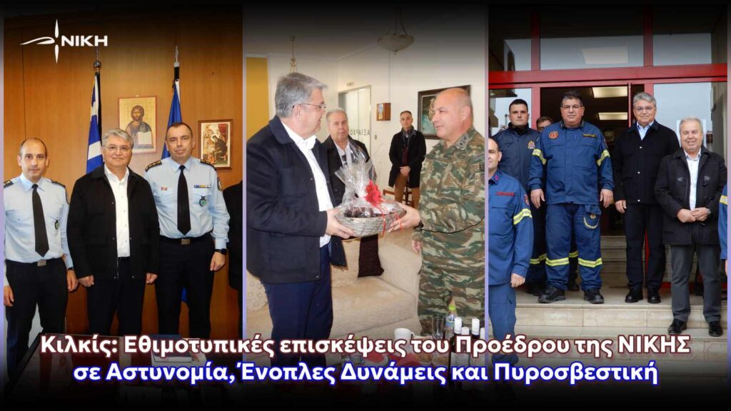 Ο κύκλος των επισκέψεων ολοκληρώθηκε την Τρίτη 23 Δεκεμβρίου 2025, με την επίσκεψη του Προέδρου της ΝΙΚΗΣ στην Πυροσβεστική Υπηρεσία Κιλκίς, όπου συναντήθηκε με τον Διοικητή, Αντιπύραρχο κ. Ιωάννη Πολιτίδη. Κατά τη διάρκεια της συνάντησης αντάλλαξαν ευχές και συζήτησαν για το επιχειρησιακό έργο της Υπηρεσίας και τον υφιστάμενο εξοπλισμό.