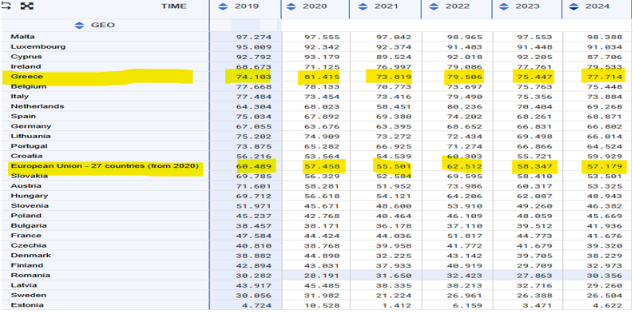 Η Eurostat παρουσιάζει τη χώρα μας με αυξανόμενη ενεργειακή εξάρτηση 77,7% το 2024 έναντι περίπου 57,2% στην ΕΕ και να φιγουράρει διαχρονικά στις 4-5 χειρότερες θέσεις. Η Ελλάδα δεν απορροφά τις διεθνείς αναταράξεις διότι η κυβέρνηση Μητσοτάκη δεν μερίμνησε να λάβει μέτρα, τις εισάγει και μαζί με την ενέργεια, εισάγει πληθωρισμό και αβεβαιότητα. Η έλλειψη αυτάρκειας σε βασικούς τομείς της οικονομίας στην Ελλάδα -με ευθύνη όλων των κυβερνήσεων της μεταπολιτεύσεως- γίνεται ορατή, ως ήταν αναμενόμενο, με την εκάστοτε γεωπολιτική κρίση.