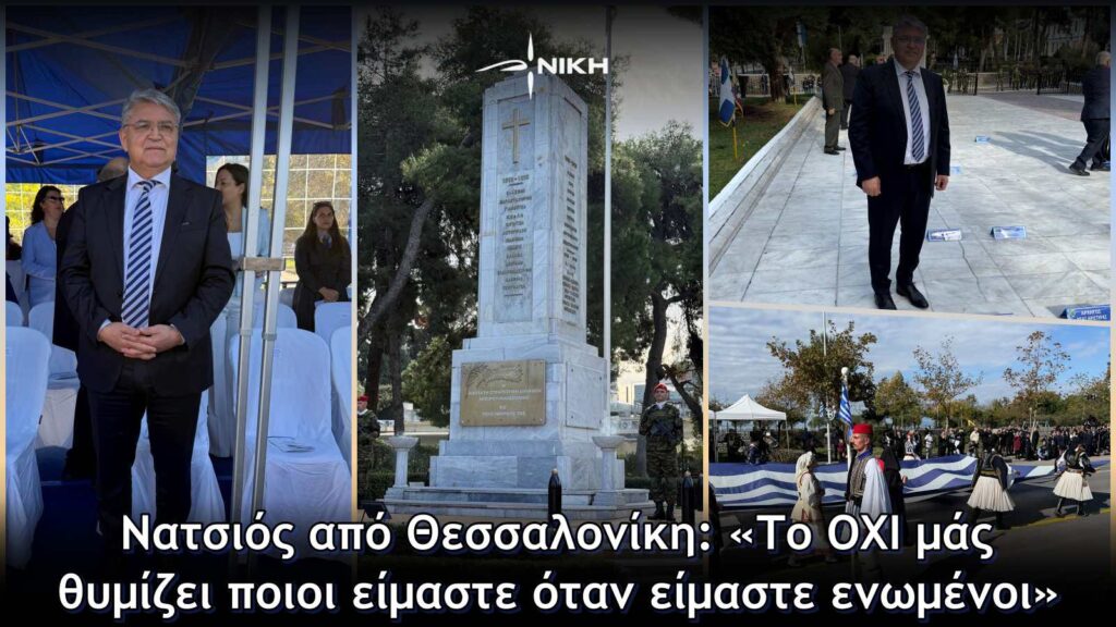Ο Πρόεδρος της «ΝΙΚΗΣ» Δημήτρης Νατσιός, μετά τη στρατιωτική παρέλαση στη Θεσσαλονίκη, προέβη σε δηλώσεις για την ιστορική επέτειο της 28ης Οκτωβρίου, αναδεικνύοντας το μήνυμα ενότητας και εθνικής αξιοπρέπειας που εκπέμπει το ΟΧΙ του 1940.