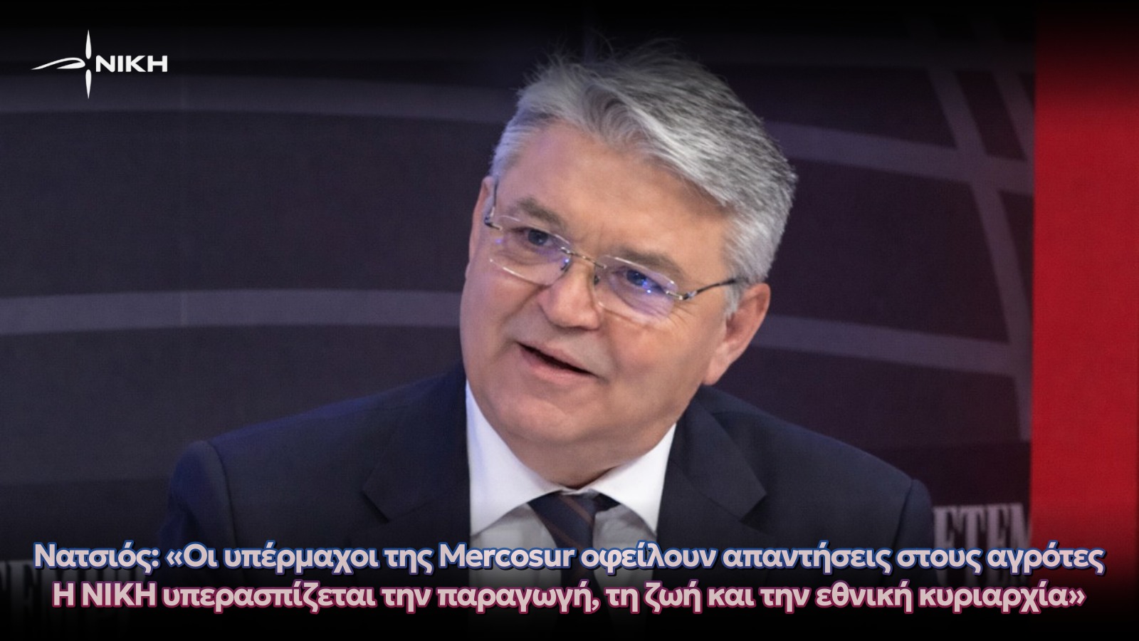 Τη θετική του αποτίμηση για την απόφαση του Ευρωπαϊκού Κοινοβουλίου να παραπέμψει τη συμφωνία ΕΕ–Mercosur στο Δικαστήριο της Ευρωπαϊκής Ένωσης εξέφρασε ο Πρόεδρος της ΝΙΚΗΣ, Δημήτρης Νατσιός, τονίζοντας ότι πρόκειται για μια εξέλιξη που επιβεβαιώνει τις σοβαρές επιπτώσεις που αναμένεται να προκαλέσει η συμφωνία στον πρωτογενή τομέα της Ευρωπαϊκής Ένωσης και ειδικά στις χώρες του Νότου.