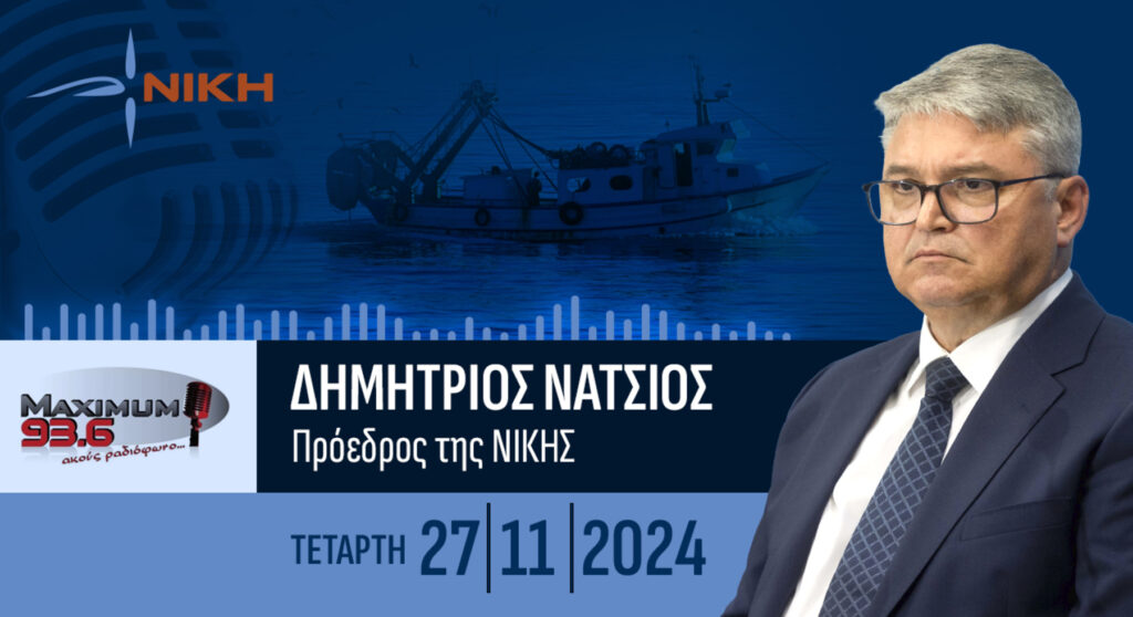 Σχετικά με την επίκαιρη ερώτηση που κατέθεσε στη Βουλή αναφορικά με το αν επιτρέπεται η αλιεία των τούρκων ψαράδων εντός ελληνικών χωρικών υδάτων μίλησε ο πρόεδρος της ΝΙΚΗΣ, Δημήτριος Νατσιός, στον ραδιοφωνικό σταθμό Maximum 93,6 και τον δημοσιογράφο Δημήτρη Κολιό. Αφού διάβασε την απάντηση του υπουργείου Ναυτιλίας, ο κ. Νατσιός εξήγησε ότι το ελληνικό κράτος απλώς καταγράφει τα περιστατικά, μην κάνοντας οποιαδήποτε άλλη ενέργεια αποτρεπτικού χαρακτήρα, σε αντίθεση με τους γείτονες, Ρουμάνους και Βούλγαρους. Ο πρόεδρος της ΝΙΚΗΣ χαρακτήρισε ως πολιτική υποτέλειας αυτήν που ακολουθείται από την ελληνική κυβέρνηση, η οποία δεν δίνει εντολές αποτροπής, με αποτέλεσμα ο ελληνικός λαός να έχει μετατραπεί στον πιο αφοσιωμένο, υπάκουο και γονατιστό υπήκοο του ΝΑΤΟ. «Χάρη σε αυτούς τους μειοδότες, το μισό Αιγαίο το έχουν παραχωρήσει στους Τούρκους. Οι «Πρέσπες του Αιγαίου» είναι εδώ, και στο ζήτημα της Αλιείας», είπε ο κ. Νατσιός, τονίζοντας ότι έχει δει και ιδίοις όμμασι τους τούρκους ψαράδες να ψαρεύουν σε ελληνικά χωρικά ύδατα σαν στο σπίτι τους.