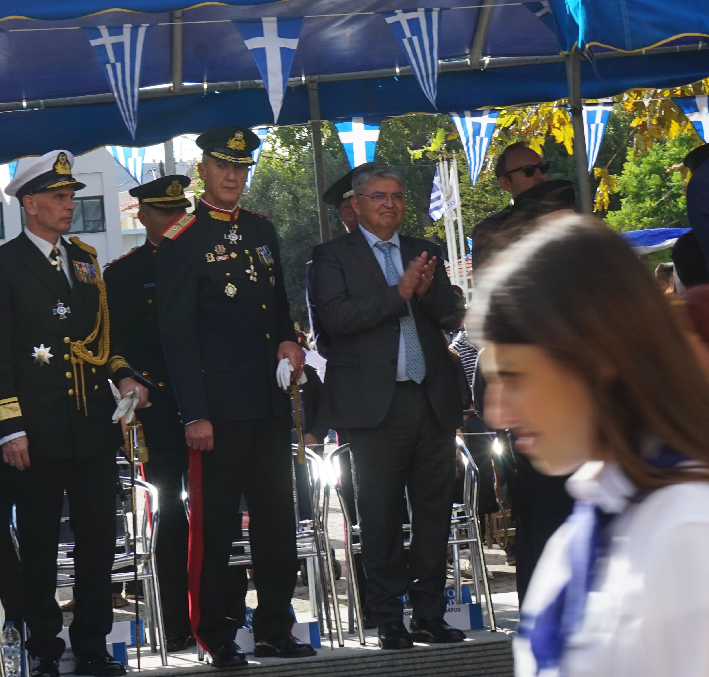 «Την ημέρα της εορτής των πολιούχων και Ελευθερωτών της Χίου Αγίων Μεγαλομαρτύρων Μηνά, Βίκτωρος και Βικεντίου το Πολεμικό μας Ναυτικό εισέρχεται και υψώνει τη Γαλανόλευκη. Η Χίος μετά από αιώνες καταστροφών και σφαγών επιτέλους ελεύθερη», δήλωσε και ευχήθηκε χρόνια πολλά σε όλους τους Χιώτες.
