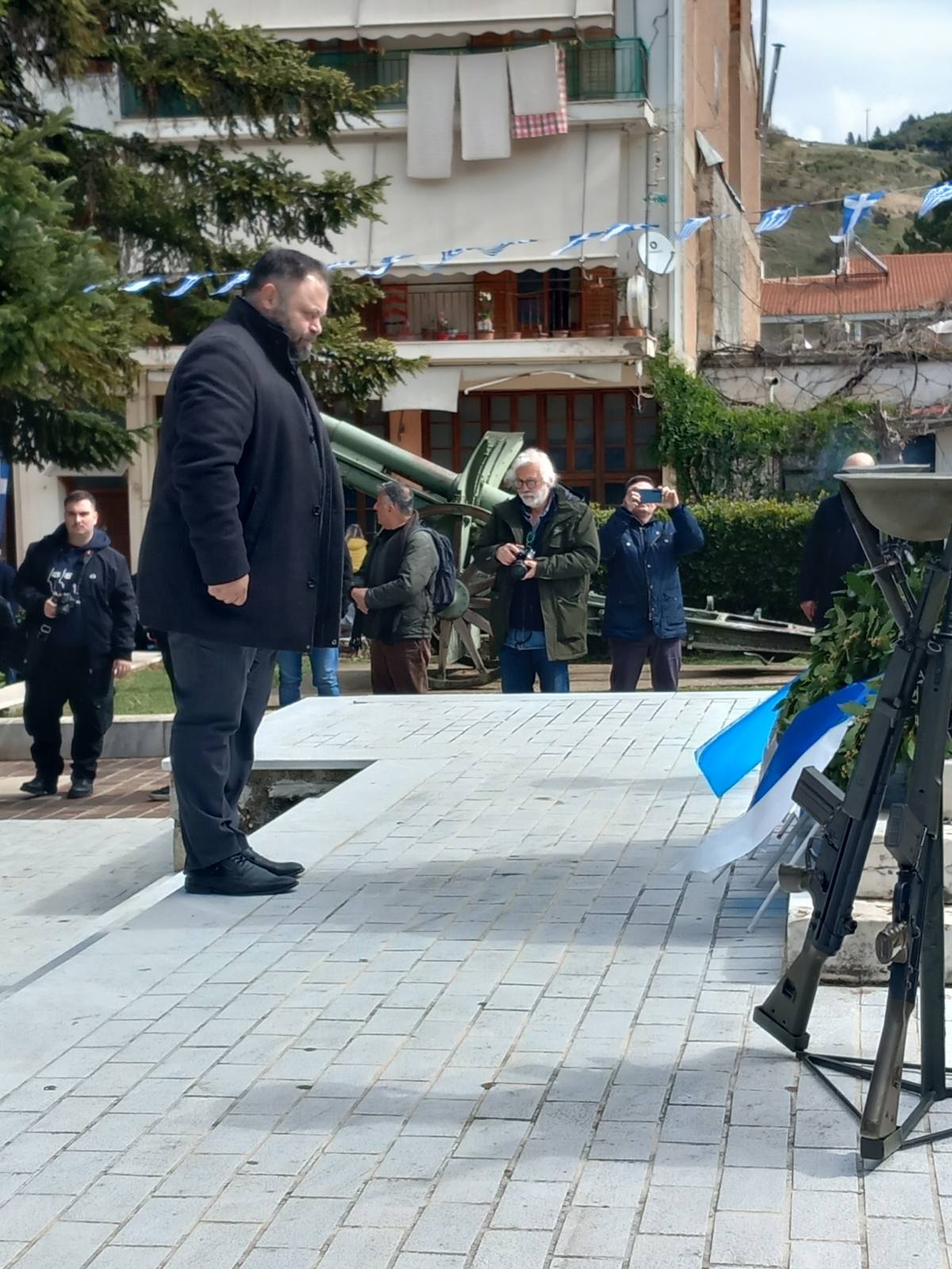 Ακολούθως, ο βουλευτής της ΝΙΚΗΣ μετέβη στο Μνημείο Πεσόντων Ηρώων, στην κεντρική πλατεία των Καλαβρύτων, όπου κατέθεσε στεφάνι στη μνήμη και προς τιμήν των Αγωνιστών που θυσιάστηκαν για την ελευθερία της πατρίδας. Η συμβολική αυτή πράξη αποτέλεσε ελάχιστο φόρο ευγνωμοσύνης απέναντι σε εκείνους που με τον αγώνα και το αίμα τους άνοιξαν τον δρόμο για την εθνική παλιγγενεσία.