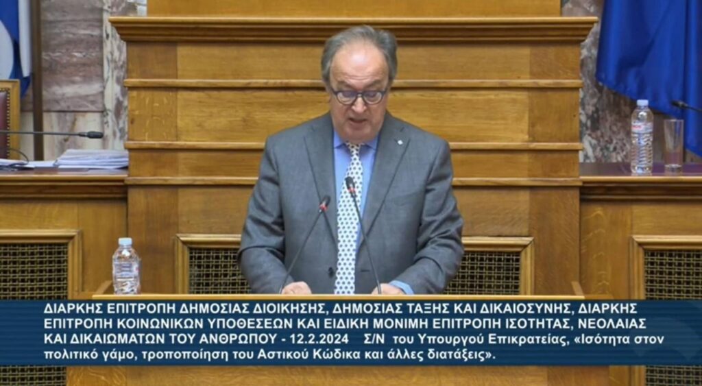 για το νομοσχέδιο του Υπουργού Επικρατείας, κ. Χρήστου – Γεωργίου Σκέρτσου «Ισότητα στον πολιτικό γάμο, τροποποίηση του Αστικού Κώδικα και άλλες διατάξεις» (12.2.2024).