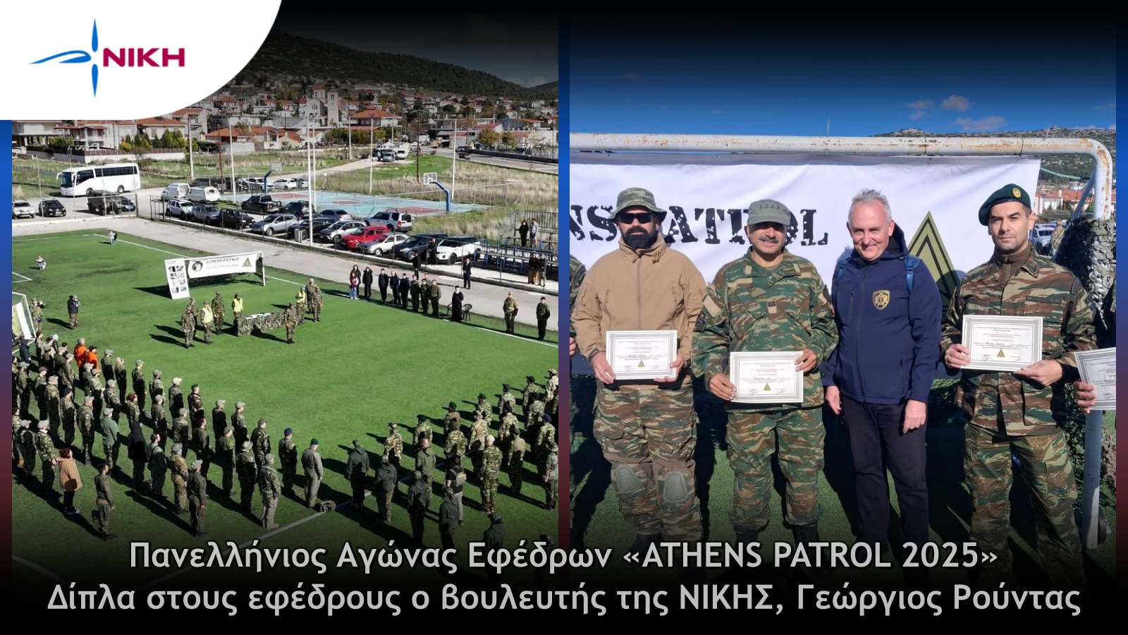 Με απόλυτη επιτυχία ολοκληρώθηκε ο Πανελλήνιος Αγώνας – Άσκηση Εθελοντών Εφέδρων «ATHENS PATROL 2025», μια απαιτητική διοργάνωση αξιολόγησης ετοιμότητας της εθελοντικής εφεδρείας, που πραγματοποιείται εδώ και έντεκα χρόνια από τον Σύλλογο Στρατιωτικού Αθλητισμού Εφέδρων (ΣΣΑΕ / MPF). Ο φετινός αγώνας διεξήχθη από τις 21 έως τις 23 Νοεμβρίου στα Δερβενοχώρια Αττικής (Δυτική Πάρνηθα) και ήταν αφιερωμένος στα 70 χρόνια από την έναρξη του εθνικού αγώνα της ΕΟΚΑ για την ανεξαρτησία της Κύπρου.
