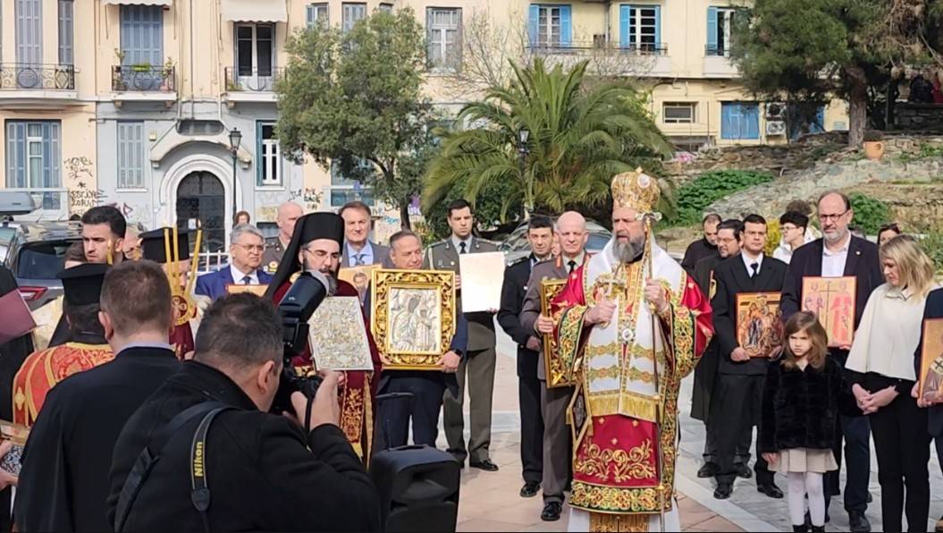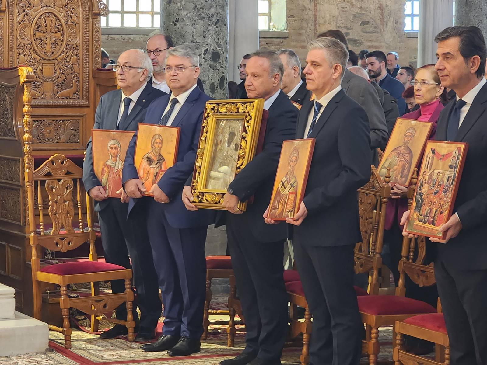 Αφού παρέστη στην Πανηγυρική Θεία Λειτουργία, στη συνέχεια συμμετείχε στη λιτάνευση των Ιερών Εικόνων, τιμώντας την ιστορική επέτειο της αναστήλωσης των Εικόνων και τον θρίαμβο της Πίστεως έναντι των αιρέσεων.
