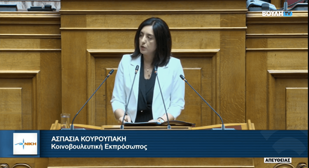 Ομιλία της Ασπασίας Κουρουπάκη, βουλευτού του Β1 Βορείου Τομέα Αθηνών, στην Ολομέλεια της Βουλής για το σχέδιο νόμου του Υπουργείου Δικαιοσύνης με θέμα: «Εκσυγχρονισμός θεσμικού πλαισίου για το ενέχυρο και σύσταση Ενιαίου Ηλεκτρονικού Μητρώου Ενεχύρων επί κινητών, απαιτήσεων και άλλων δικαιωμάτων και άλλες διατάξεις» (18/07/2024).