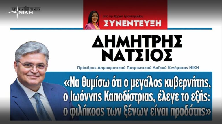 Σε συνέντευξη που παραχώρησε στη δημοσιογράφο Κορίνα Τριανταφύλλου και την εφημερίδα Attica Times, ο Πρόεδρος της ΝΙΚΗΣ, Δημήτρης Νατσιός, τοποθετήθηκε…