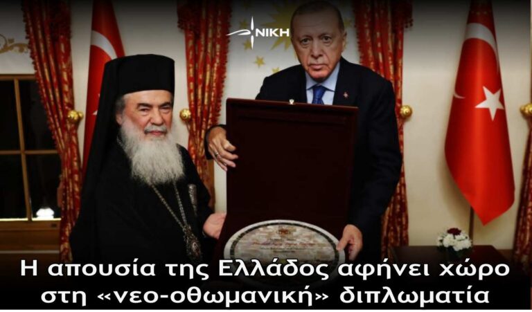 Η απουσία της Ελλάδος αφήνει χώρο στη «νεο-οθωμανική» διπλωματία ΔΕΛΤΙΑ ΤΥΠΟΥ 14/09/2025 Η απρόσμενη συνάντηση του Τούρκου Προέδρου Ερντογάν με τον Πατριάρχη Ιεροσολύμων στην Κωνσταντινούπολη δείχνει την προσπάθεια της Άγκυρας να εμφανιστεί…
