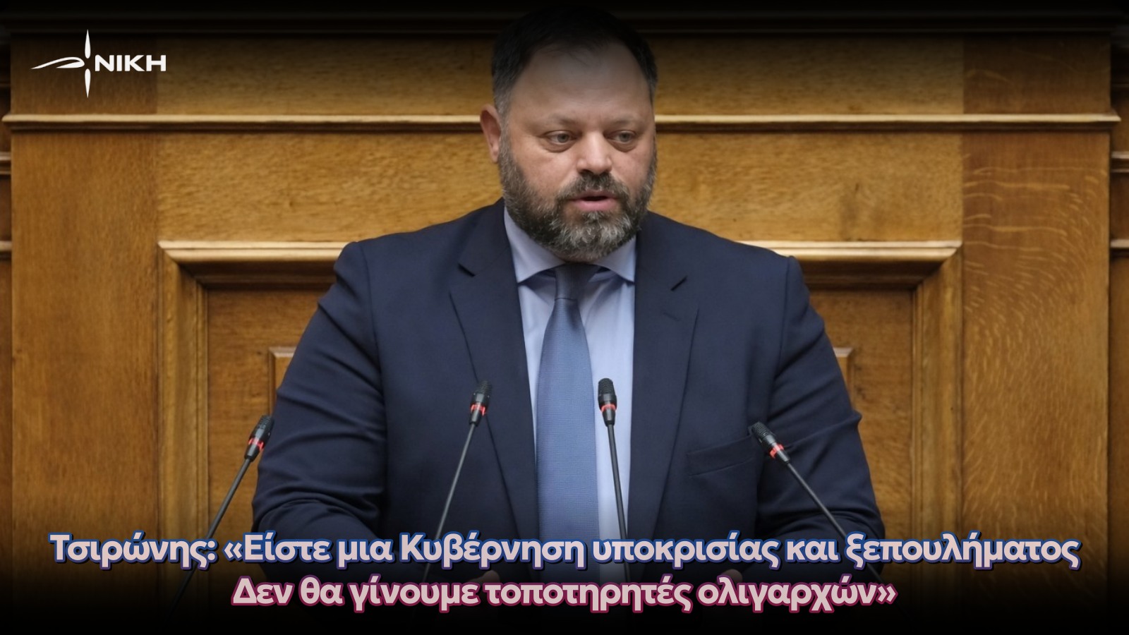 Ο κ. Τσιρώνης, κλείνοντας την ομιλία του, δήλωσε πως η ΝΙΚΗ δεν θα γίνει τοποτηρητής ξένων ή ντόπιων ολιγαρχών.