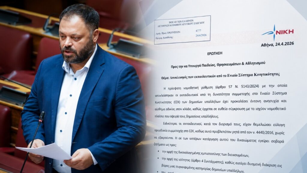 Ερώτηση προς την Υπουργό Παιδείας, Θρησκευμάτων και Αθλητισμού κατέθεσε ο βουλευτής Αχαΐας της ΝΙΚΗΣ, Σπυρίδων Τσιρώνης, αναδεικνύοντας τον αποκλεισμό των εκπαιδευτικών από το Ενιαίο Σύστημα Κινητικότητας, όπως προβλέπεται στο άρθρο 57 του νόμου 5143/2024.